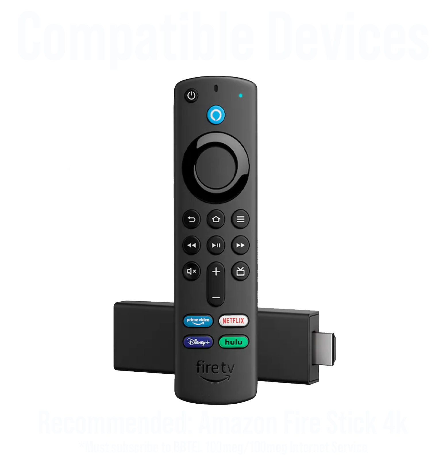 Like Netflix, HULU and other streaming services, BBTELStream TV is an app-based service. When you subscribe to BBTELStream TV, you’ll download the app on your streaming devices (Roku Amazon FireTV stick, AppleTV and RokuTV and and FireTV OS enabled TVs. You’ll have access to all the channels available in the package you subscribe to.